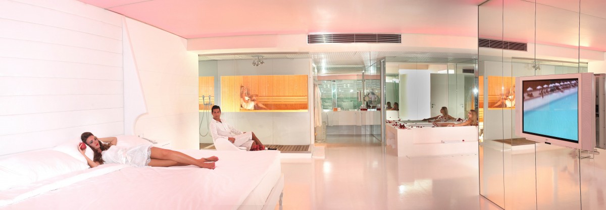 Площадь · 64 кв.м · вид на море · гардеробная · душевая кабина с паровым эффектом для 2 человек · кондиционер работает по часам, в зависимости от погодных условий · вместительный сейф · халаты (по запросу, бесплатно) · макси-бар (платно) · терапевтическая кровать на балконе · чайные принадлежности · электрический чайник· балкон · центральный кондиционер · телевизор · Wi-Fi : бесплатно · телефон : платно · фен · мини-бар · душ · халат и тапочки · джакузи · Room service : платно