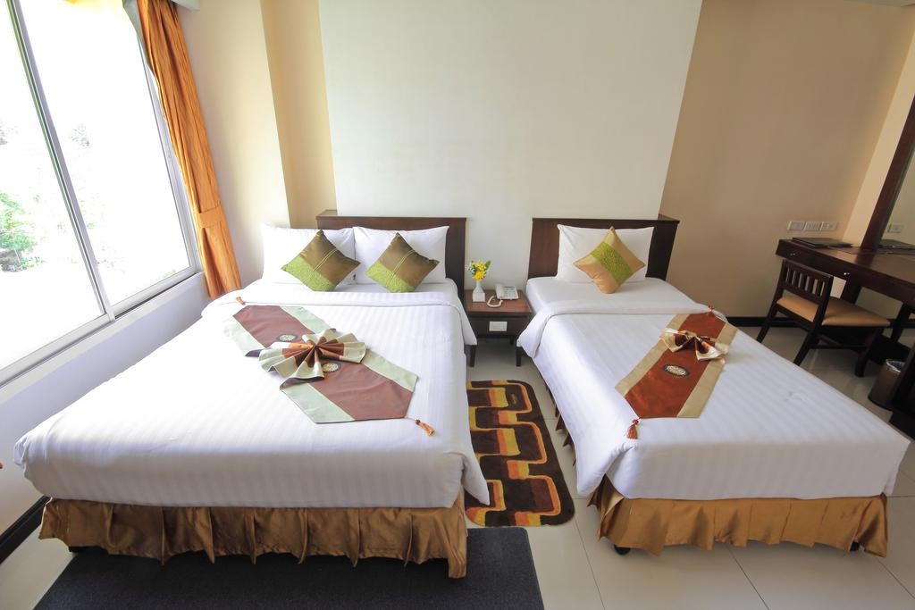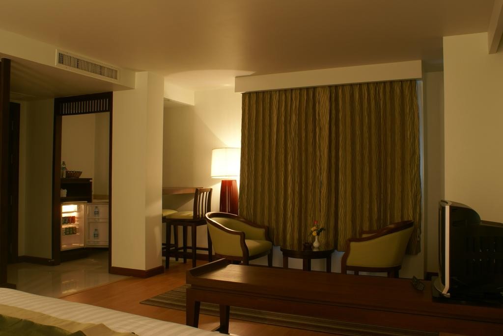 Все просторные номера отеля Aiyara Palace располагают кондиционером, телевизором, телефоном, мини-баром и собственной ванной комнатой с ванной.