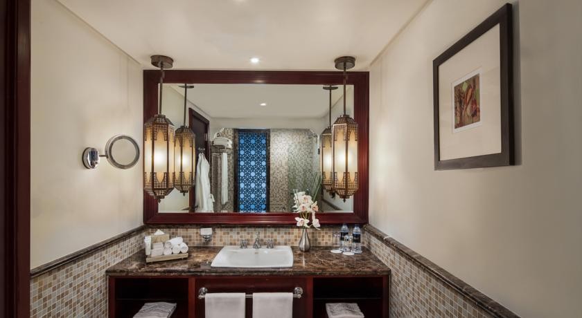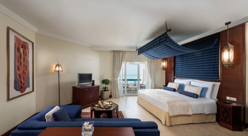 Номера выдержаны в светлых тонах и обставлены элегантной деревянной мебелью в ближневосточном стиле. В роскошных номерах и люксах имеется собственный меблированный балкон или терраса. Из окон открывается панорамный вид на Персидский залив и пышный ландшафтный сад.