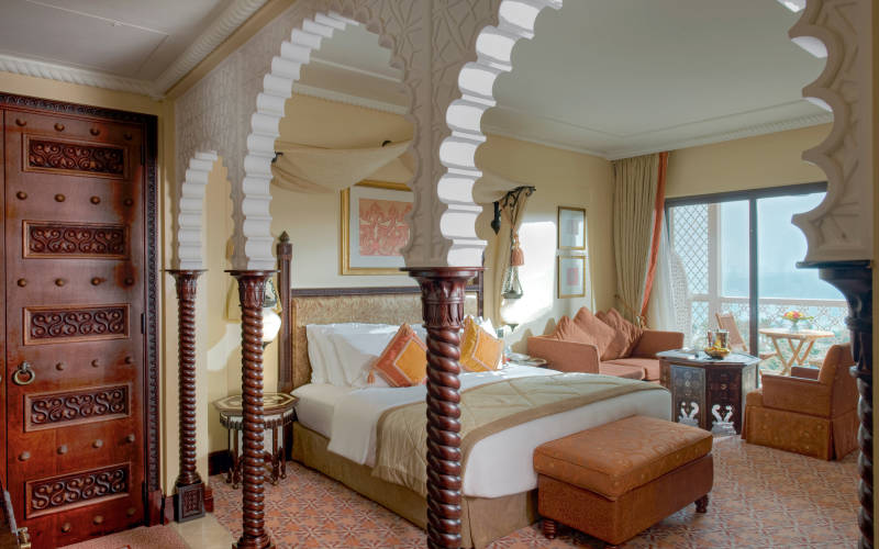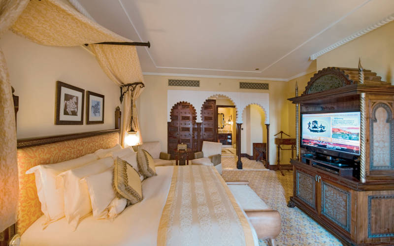 Из просторных номеров отеля Jumeirah Al Qasr открывается вид на Персидский залив или внутреннюю территорию. В каждом номере имеются отдельная гардеробная, антикварная мебель и тропический душ.
