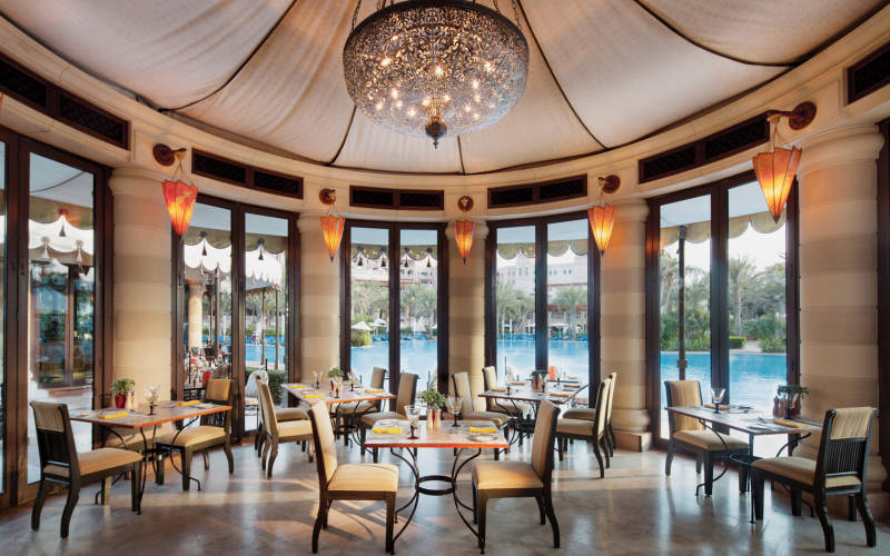 В ресторане Magnolia, одном из 50 ресторанов и баров отеля Jumeirah Al Qasr, готовят блюда из экологически чистых продуктов. В баре Koubba можно проводить вечера, наблюдая за закатом. На обед для гостей накрывают обильный «шведский стол» в арабском стиле.