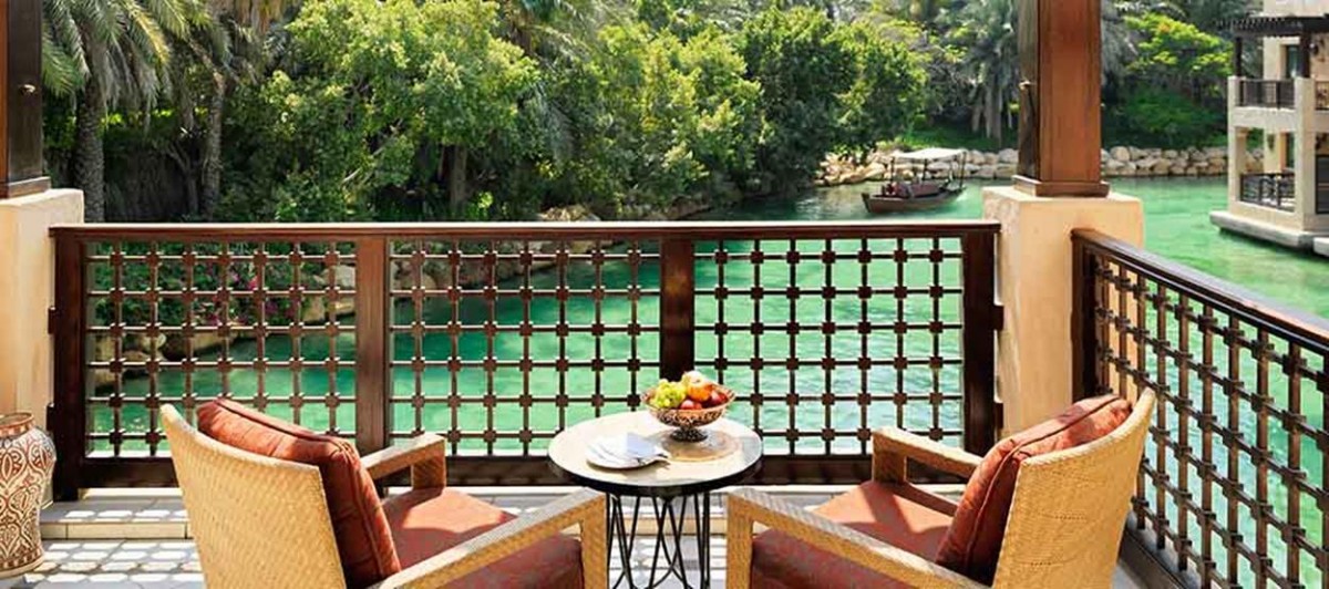 Площадь · 60 квадратных метров­ • Вид из номера · Изумительный вид на живописные сады курорта, извилистые тропинки в тени многолетних растений, традиционные арабские ­башни или умиротворяющий вид на водные каналы, по которым снуют маленькие лодочки под названием «абра» • Размещение · 2 взрослых и 2 детей в возрасте до 12 лет или 3 взрослых • Кровати · 1 кровать King Size • Дополнительные удобства · Все необходимое для приготовления чая и кофе в номере·Бесплатная ежедневная газета­ · Гладильная доска и утюг­ · Сейф­ · Фен · Минибар­ · Детская кроватка (по запросу)