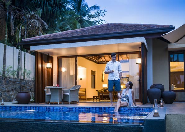 Площадь · 171 квадратный метр • Терраса с открытым персональным бассейном и обеденной зоной на открытом воздухе • Гостиная с обеденной зоной • 2 спальни (одна – с кроватью king-size, вторая – с двумя отдельными кроватями) • 2 ванные комнаты (каждая – с ванной и душем с функцией «тропический дождь») • Душ на открытом воздухе • Комната для прислуги • DVD-плеер • Аудиосистема Bose • Телевизор • Wi-Fi доступ в Интернет • Сейф • Мини-бар • Винный холодильник • Оборудование для приготовления чая • Кофемашина Nespresso