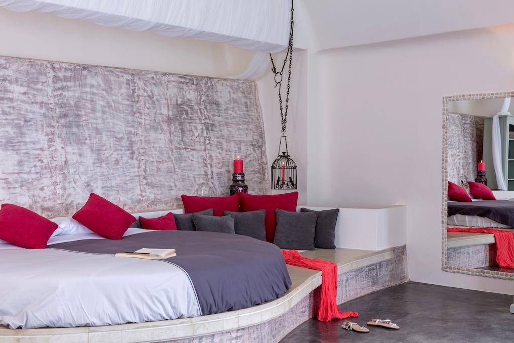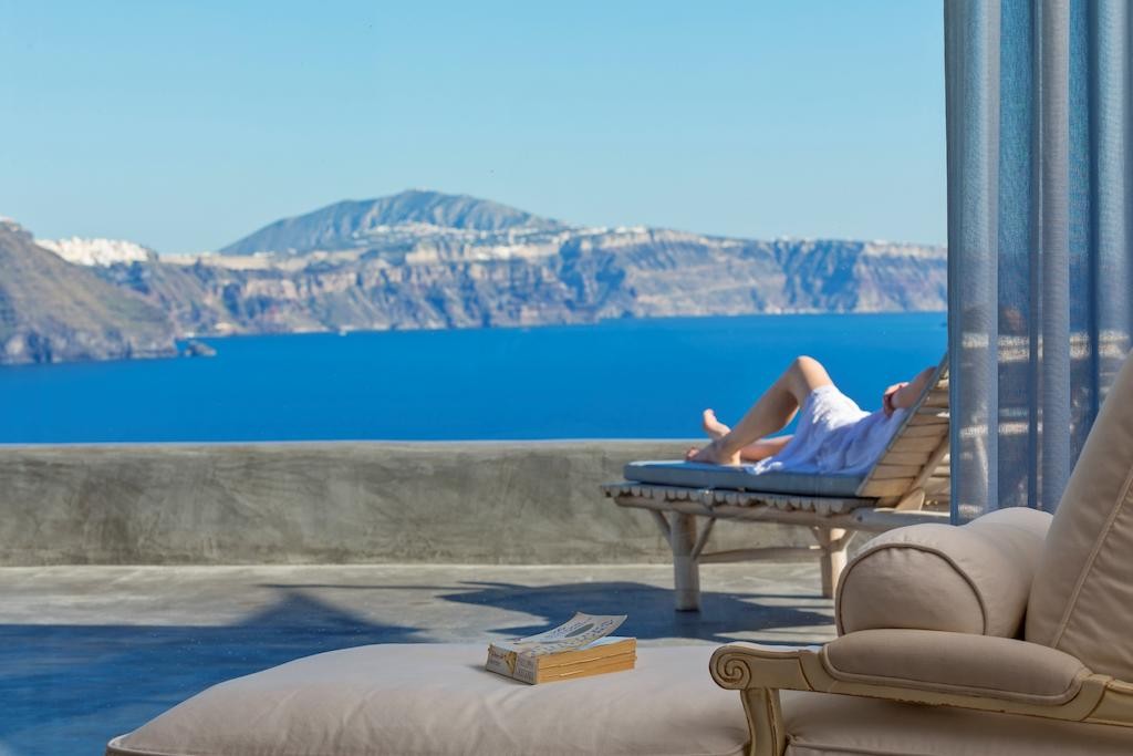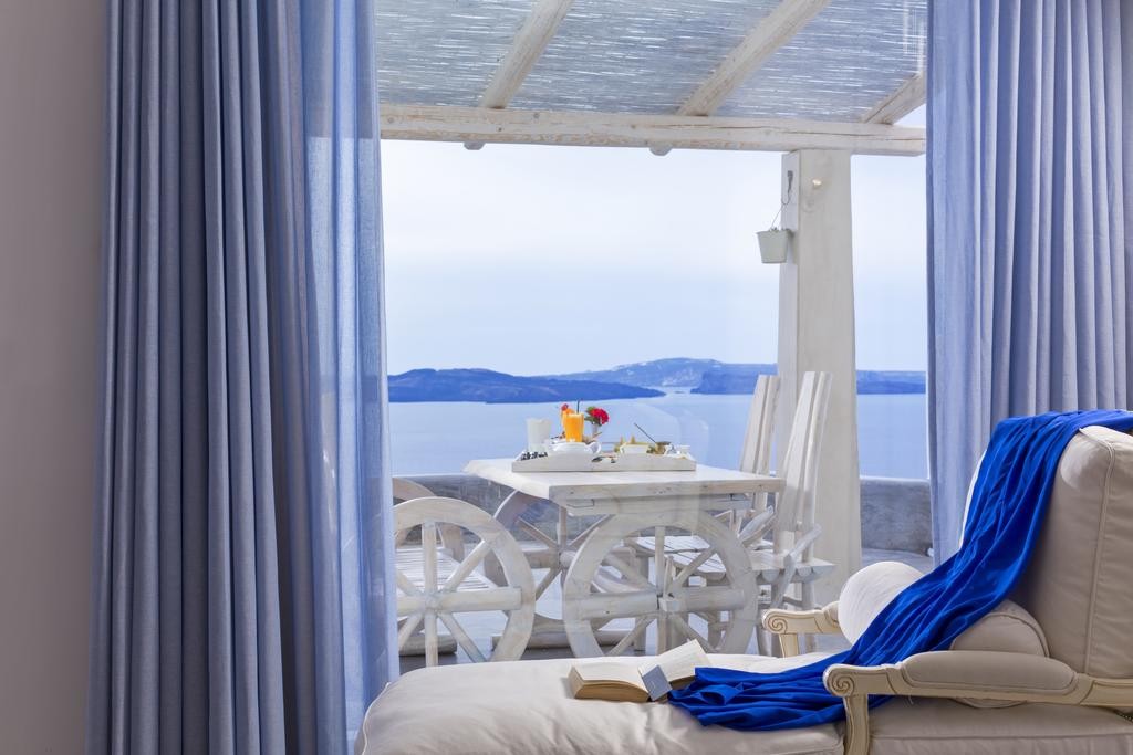 До пляжа можно дойти всего за 18 минут. Отель расположен на утесе кальдеры, из его окон открывается вид на вулкан, окружающие острова и Эгейское море. В интерьере отеля использовано сочетание классической роскоши и современного оформления в стиле минимализма.