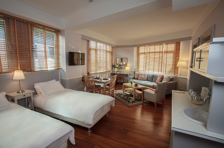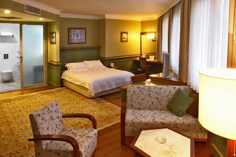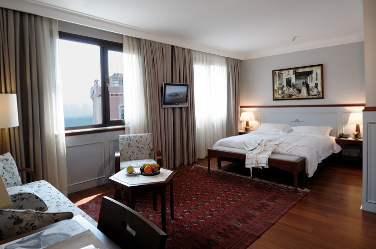 Площадь · 20 квадратных метров • вид на Мраморное море, собор Святой Софии или мечеть Султанахмет • кровати 1 king или 2 twin • ванная комната с тропическим душем • чайник • письменный стол • 22» телевизор • кондиционер • минибар • сейф • Wi-Fi