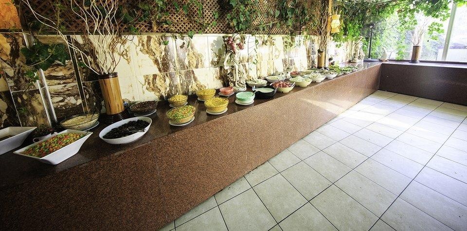 Питание — самое слабое звено отеля, явно не заслуживает 4 звезд. «Серьезные» блюда представлены лишь курицей, наггетсами из нее же, соевыми котлетами или мелкой костлявой рыбешкой. В качестве гарнира — рис и макароны, жареные овощи. Не жалеют свежих огурцов с помидорами. На ужины и обеды делают несколько салатов.