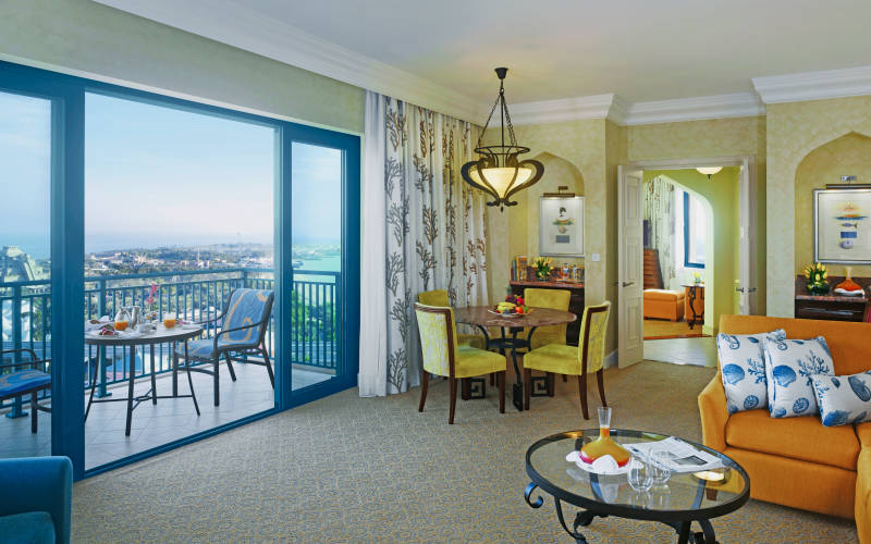 Во всех номерах, оформленных в арабском стиле с океанскими мотивами, обустроен балкон, с которого открывается живописный вид. В распоряжении гостей телевизор с плоским экраном, транслирующий спутниковые каналы, гостиный уголок, бесплатные принадлежности для чая/кофе и мини-бар. В некоторых номерах обустроена исключительно просторная терраса с панорамным видом на пальмовые острова или очень большая гидромассажная ванна в центре ванной комнаты.