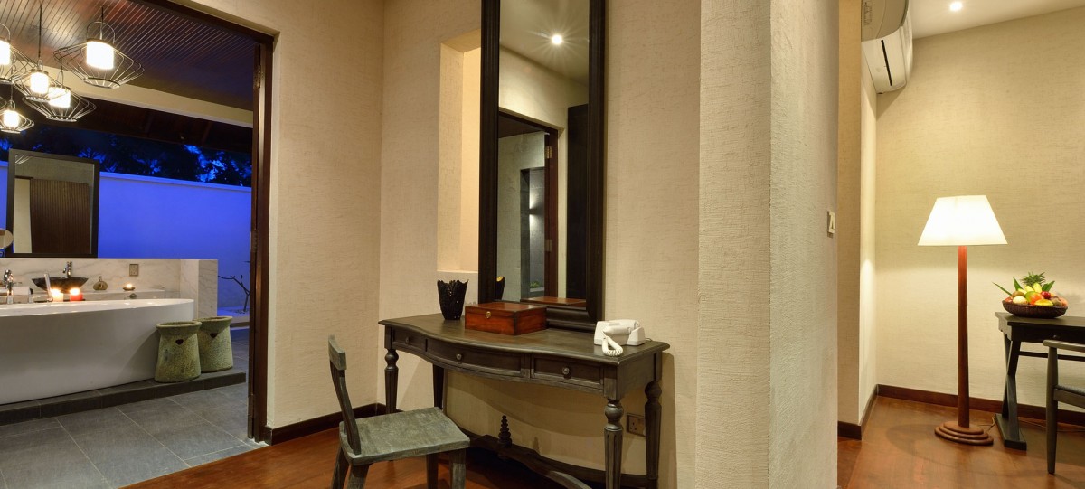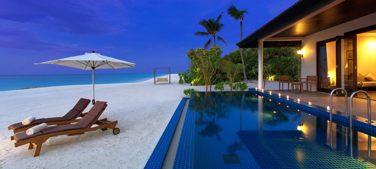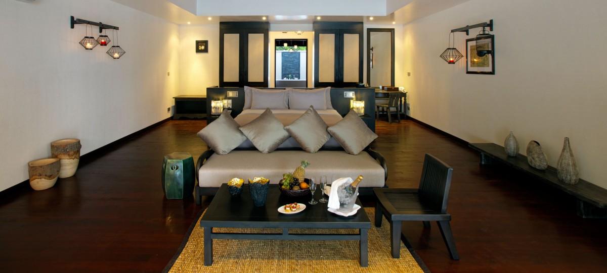 Площадь · 192 квадратных метров • Терраса с открытым персональным бассейном • Спальня с гостиной зоной (кровать queen-size) • Ванная комната на открытом воздухе с джакузи • Прямой выход на пляж • Гости данных номеров имеют особые привилегии • Кондиционер • Вентилятор • Спутниковое телевидение • Стереосистема • DVD-плеер • Wi-Fi доступ в Интернет • Док-станция для iPod • Сейф • Мини-бар • Оборудование для приготовления чая и кофе