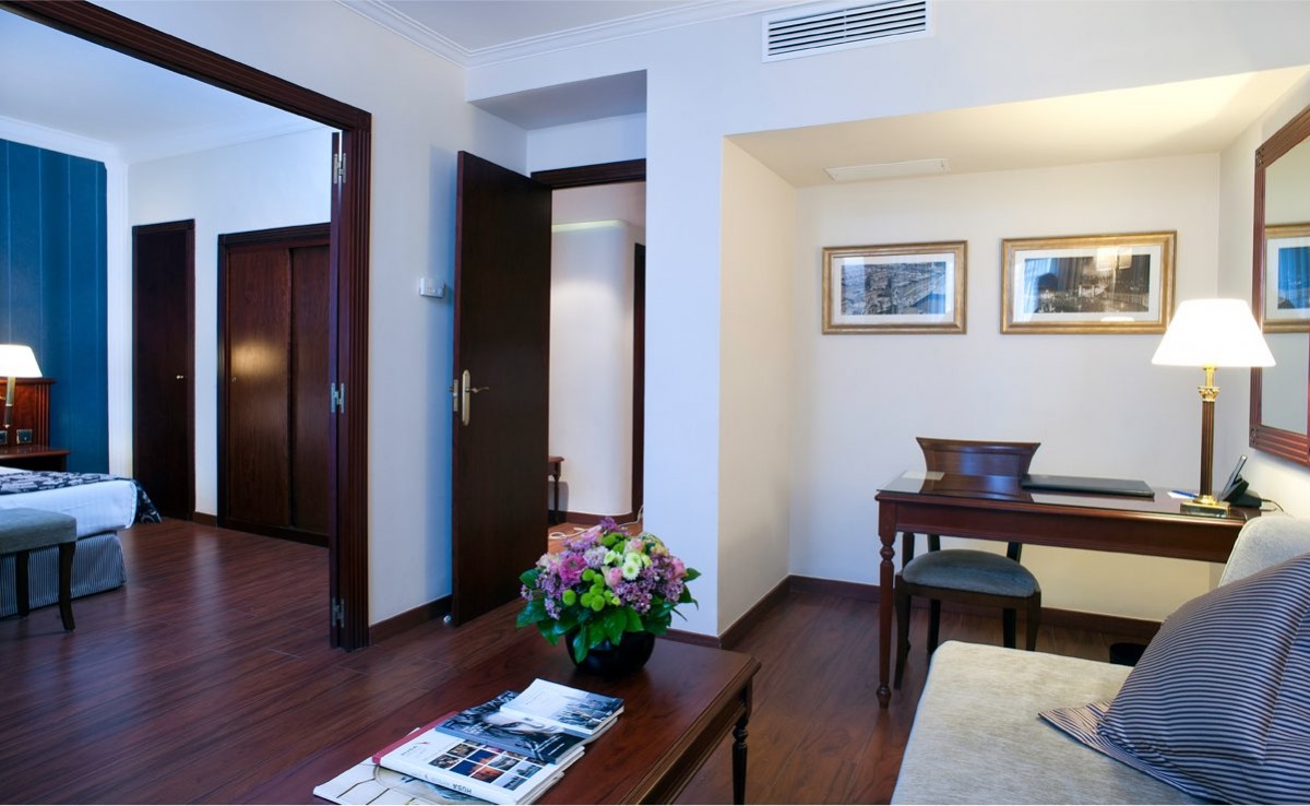 Площадь · 40 квадратных метров • Прихожая • Гостиная • Спальня с кроватью king-size или двумя отдельными кроватями • Ванная комната • Вид на улицу Gran Via • Кондиционер • Отопление • Спутниковое телевидение • WI-FI доступ в Интернет • Мини-бар • Сейф