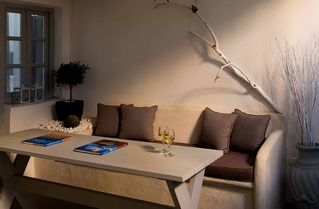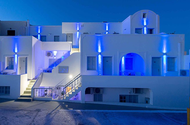 Комплекс Azul расположен в 800 метрах от оживленного города Фиры и в 3 км от пляжа Вурвулос. До порта Афиниос нужно проехать 8 км, до аэропорта Санторини — около 14 км. Расстояние до знаменитых пляжей Периволос и Перисса также составляет 14 км.
