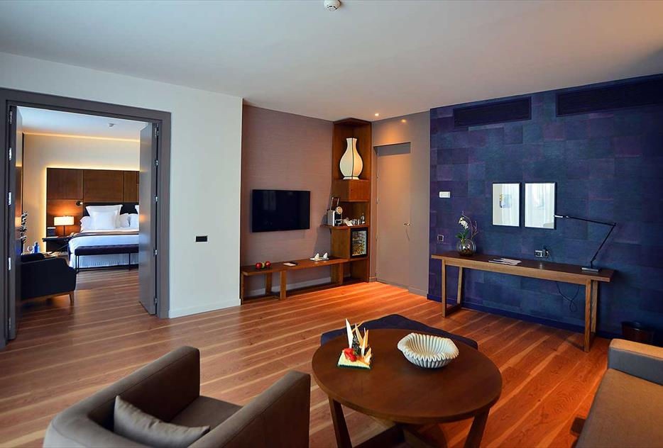 Площадь · 80 квадратных метров • Терраса/патио • Гостиная • Спальня с двуспальной кроватью • Гардеробная • Ванная комната с гидромассажной ванной и душем с функцией «тропический дождь» • Кондиционер • Отопление • Спутниковое телевидение • Wi-Fi доступ в Интернет • Телефон • Сейф • Мини-бар • Фен • Утюг и гладильная доска • Халаты