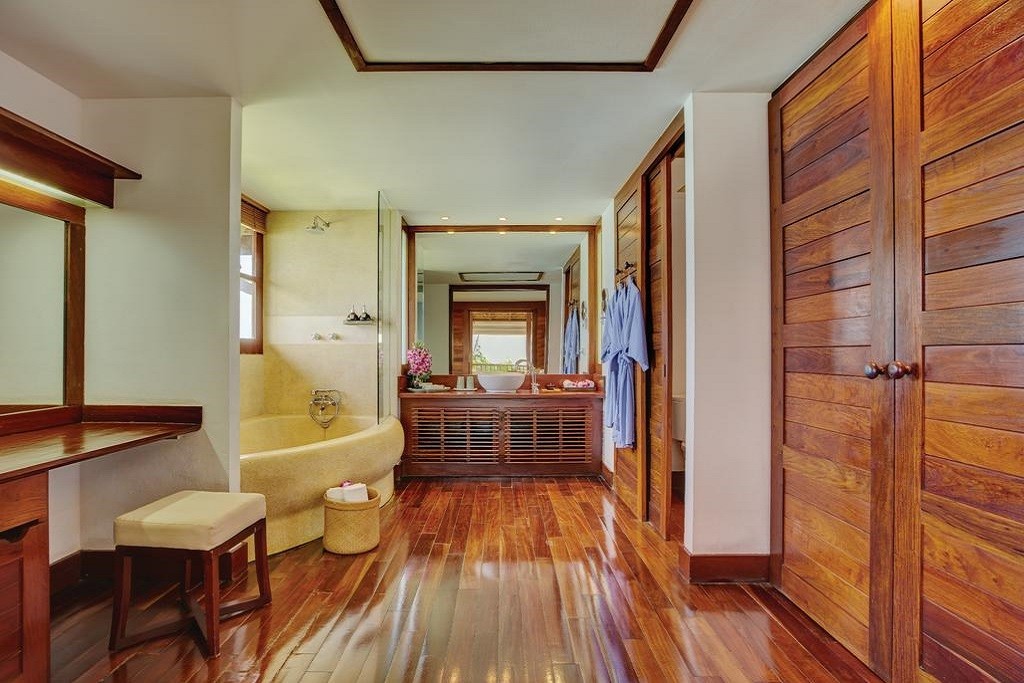 Просторные виллы с кондиционером оформлены в современном тайском стиле и располагают большими патио с видом на море. В каждом номере есть бесплатный Wi-Fi, DVD-плеер, телевизор и диван в тайском стиле. В ванной комнате установлена ванна со статуями тераццо и тропический душ.