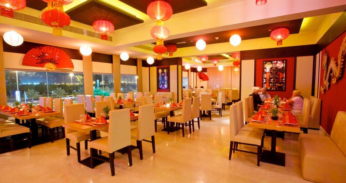 В течение всего дня гости могут поесть в одном из ресторанов. В другом ресторане подают фирменные блюда китайской кухни. В кафе на территории предлагается кальян.