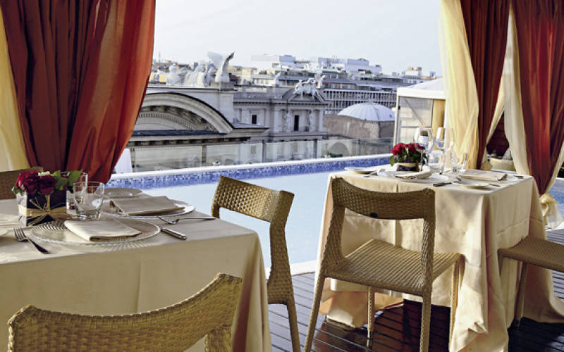 Отель Boscolo Exedra Roma размещен на площади Республики в великолепном здании XIX века из белого мрамора. К услугам гостей этого роскошного 5-звездочного отеля панорамная терраса на крыше с плавательным бассейном.