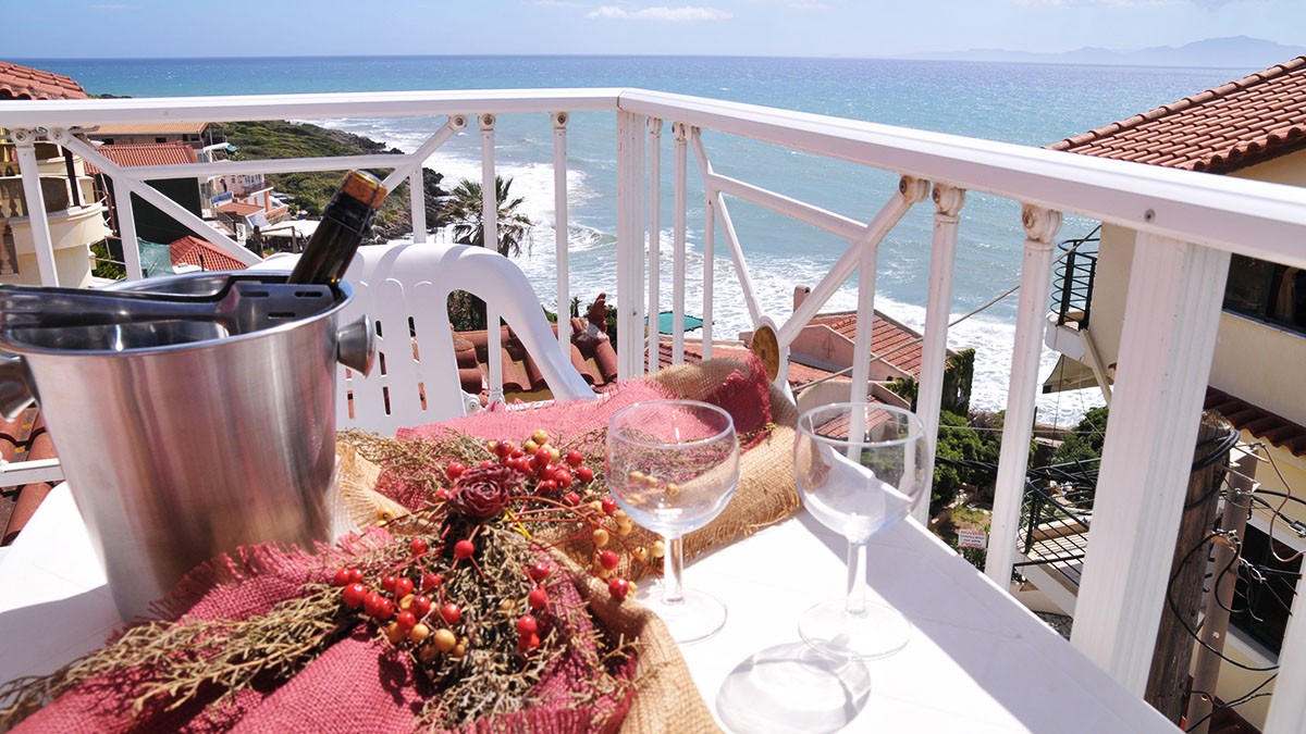 Гости могут посетить ресторан отеля и отведать блюда либо в обеденной зоне, либо на балконе с видом на море. Сервируется завтрак из блюд греческой и средиземноморской кухни. В баре на территории в течение всего дня подают кофе, напитки и коктейли.