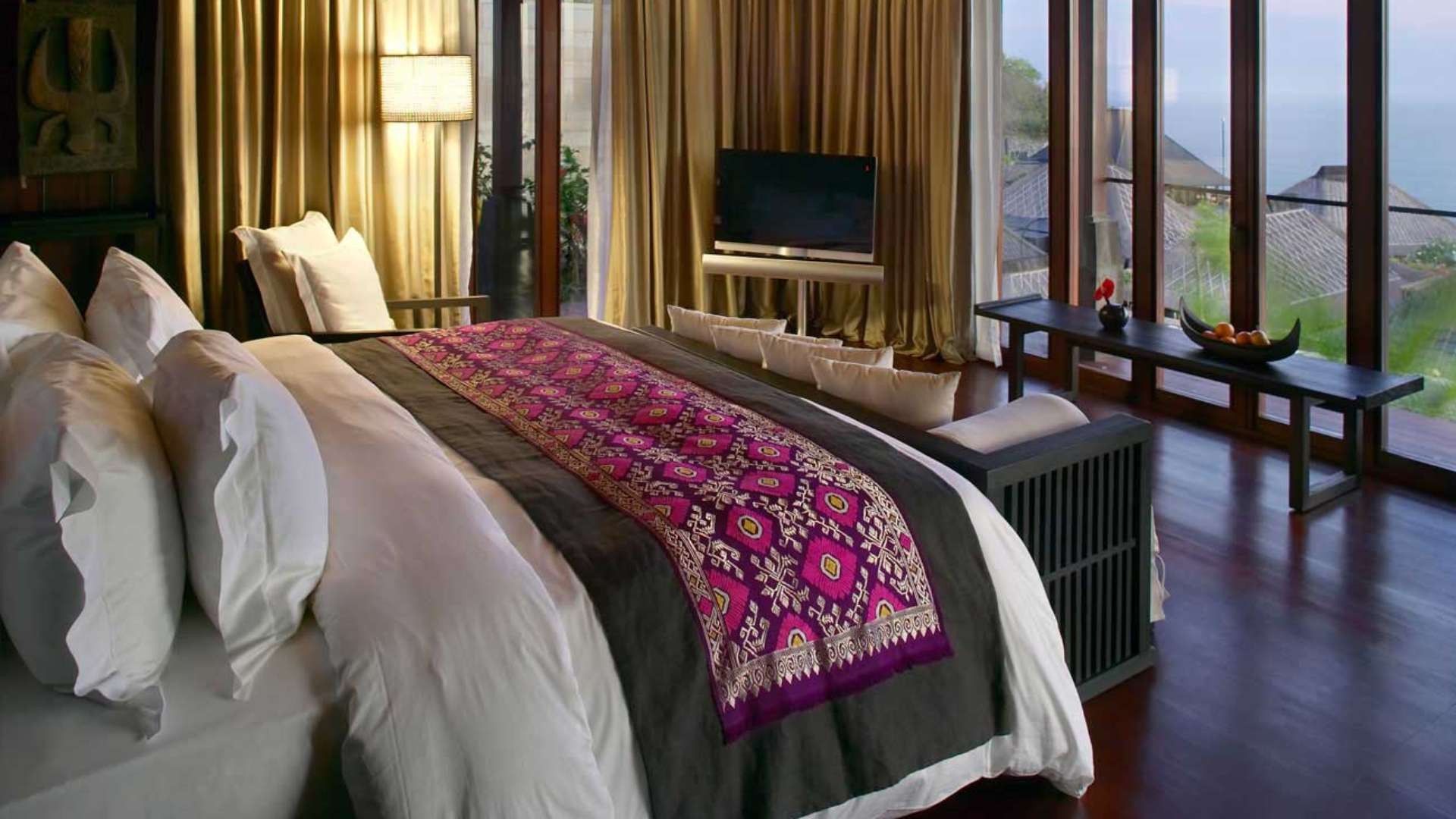 Из курортного отеля Bulgari Bali, расположенного на высоте 150 м над уровнем моря, открывается потрясающий вид на Индийский океан. К услугам гостей роскошные виллы с собственной открытой верандой на солнечной стороне и небольшим бассейном. До пляжа можно добраться только на подъемнике.