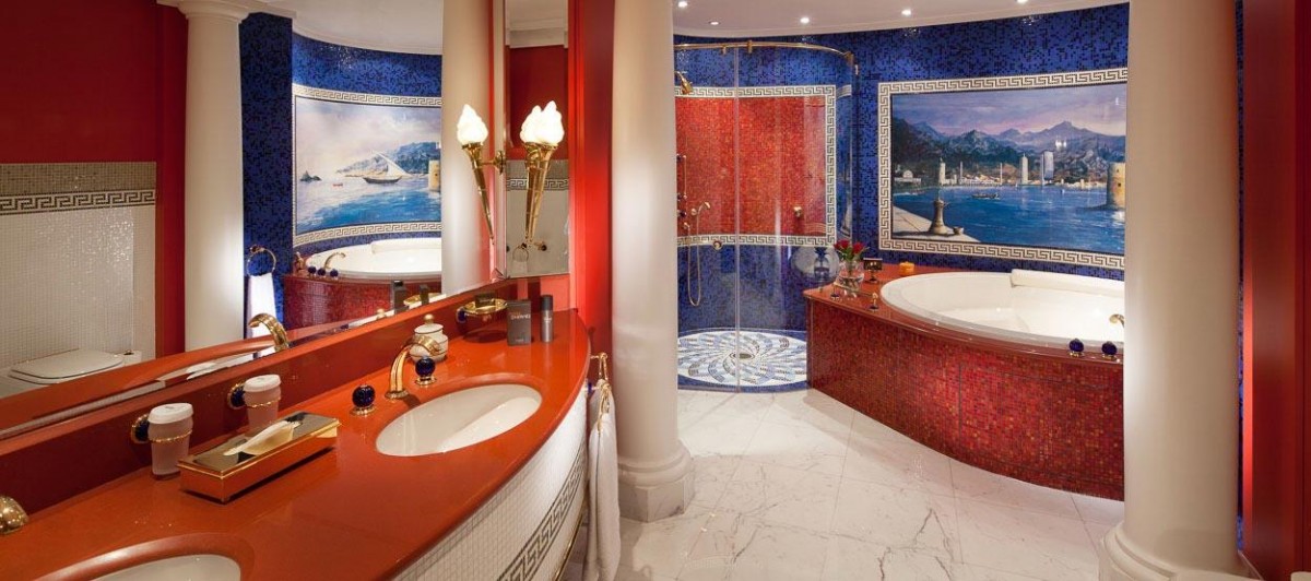 Площадь · 330 квадратных метров • Вид из номера · Великолепная возможность любоваться безмятежными лазурными водами Персидского залива • Размещение · 2 взрослых и 2 детей в возрасте до 12 лет • 2 кровати King Size • Просторная ванная комната с джакузи, отдельный ливневый душ и косметика для ванны Hermes • Возможности связи Бесплатный Wi-Fi и кабельный широкополосный доступ к сети Интернет в номере и на территории отеля • Техническое оснащение · 42-дюймовые и 28-дюймовые широкоэкранные HD LED-телевизоры, док-станция для iPod/iPhone и мультимедийный центр, дистанционное управление оборудованием (шторы, телевидение, музыка и освещение), бесплатный iPad · Во время заезда в люкс, каждому гостю предлагается эксклюзивный покрытый 24-каратным золотом Ipad. Мобильное устройство служит своеобразным «виртуальным консьержем» и одним касанием экрана гости получают доступ к информации и полному перечню всех услуг, предоставляемых в отеле • Дополнительные удобства · Все необходимое для приготовления чая и кофе в номере · Бесплатная ежедневная газета · Гладильная доска и утюг · Сейф · Фен · Минибар · Детская...
