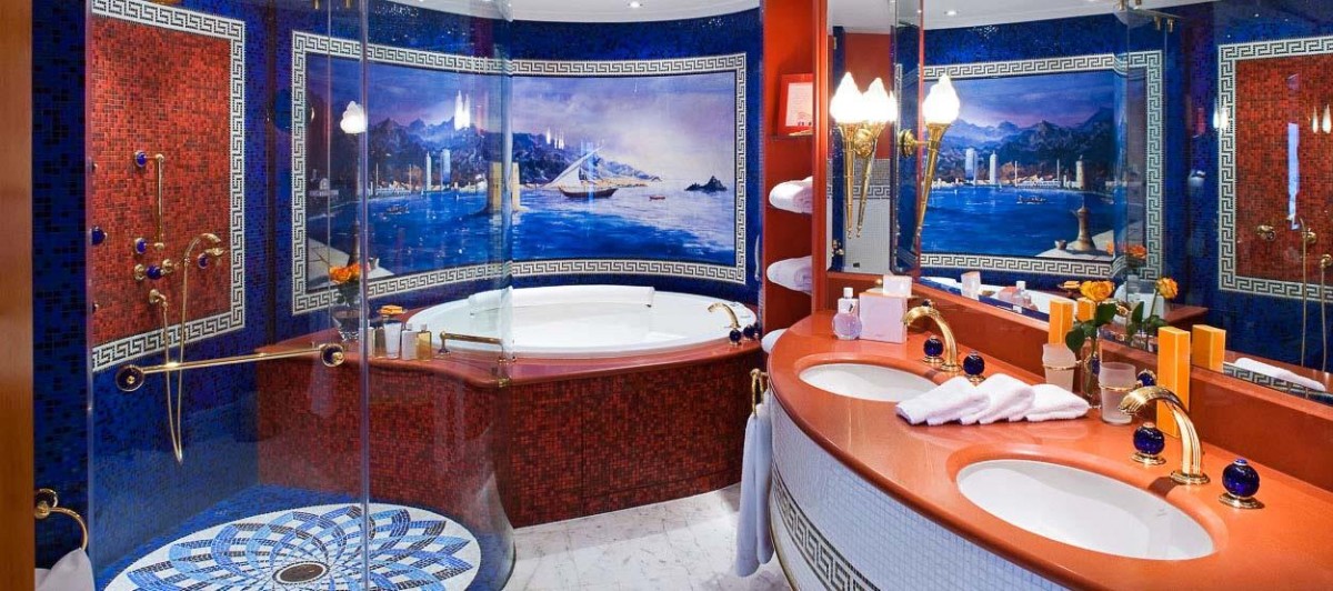 Площадь · 780 квадратных метров • Вид из номера · Великолепная возможность любоваться безмятежными лазурными водами Персидского залива • Размещение · 4 взрослых и 2 детей в возрасте до 12 лет • Кровати · 2 кровати King Size • 2 просторные ванные комнаты с джакузи, отдельный ливневый душ и косметика для ванны Hermes · Возможности связи · Бесплатный Wi-Fi и кабельный широкополосный доступ к сети Интернет в номере и на территории отеля · Техническое оснащение · 42-дюймовые и 28-дюймовые широкоэкранные HD LED-телевизоры, док-станция для iPod/iPhone и мультимедийный центр, дистанционное управление оборудованием (шторы, телевидение, музыка и освещение), бесплатный iPad · Во время заезда в люкс, каждому гостю предлагается эксклюзивный покрытый 24-каратным золотом Ipad. Мобильное устройство служит своеобразным «виртуальным консьержем» и одним касанием экрана гости получают доступ к информации и полному перечню всех услуг, предоставляемых в отеле • Дополнительные удобства · Все необходимое для приготовления чая и кофе в номере · Бесплатная ежедневная газета · Гладильная доска и утюг · Сейф · Фен · Минибар ·...