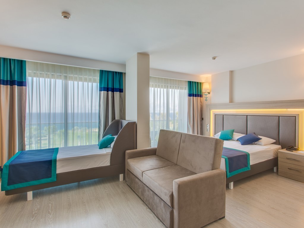 Площадь 30-32 м2 ·Одна двуспальная и одна односпальная кровать · гостиная · балкон с видом на море · электронная система запирания двери · паркетные полы · гардероб · система кондиционирования VRF · бесплатный доступ в Интернет · электронный сейф для ваших ценных вещей · ЖК-телевизор (спутниковые каналы) · телефон с прямым набором · мини-бар · фен