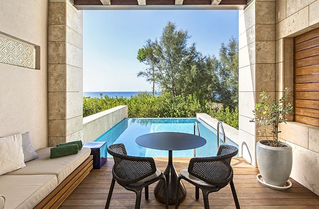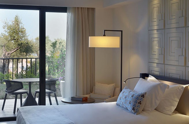 В элегантно обставленных номерах прекрасно сочетаются традиционный греческий дизайн и современные удобства. Гости каждого светлого люкса могут отдыхать в собственном бассейне.