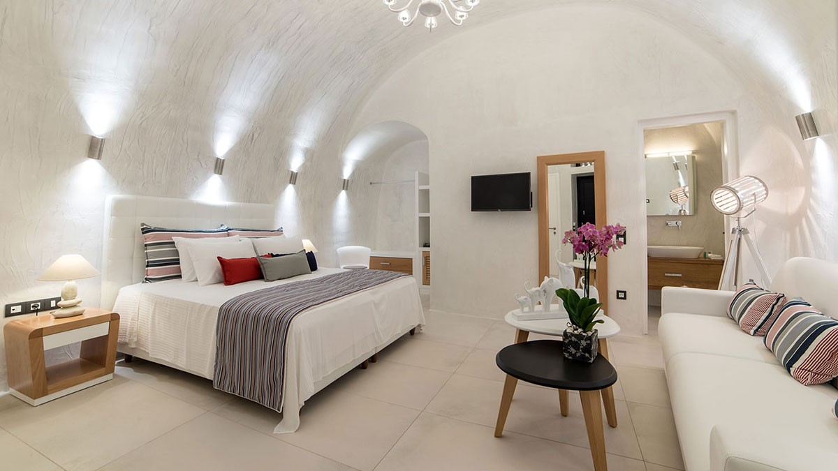 Все номера, оснащенные телевизором с плоским экраном и спутниковыми каналами, оформлены в сочетании современного и традиционного кикладского стилей. Каждый номер располагает просторной гостиной зоной и собственной ванной комнатой с современным душем, бесплатными туалетно-косметическими принадлежностями и феном. В некоторых номерах в распоряжении гостей мини-бассейн.
