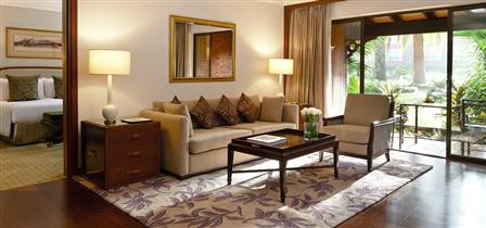 Площадь · 79 квадратных метров • Гостиная • Спальня с кроватью king-size • Гардеробная • Ванная комната с душевой кабиной • Пресс для брюк • Весы • Расположены в крыле Acacia • Вид на внутренний двор • Кондиционер • Кабельное телевидение • Wi-Fi доступ в Интернет • Телефон • Голосовая почта • Сейф • Мини-бар • Утюг и гладильная доска • Фен