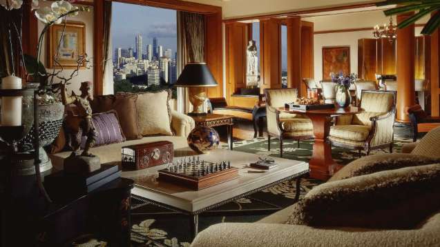 Площадь · 91 квадратных метров • Спальня с кроватью king-size или двумя кроватями twin • Отдельная гостиная с диваном • Журнальный столик • Обеденный стол на четверых • Гостевой туалет • Два телевизора • CD-плеер • В ванной комнате – две раковины, ванна, душевая кабина, отдельный вход в туалет с биде • Номера расположены с 16 по 18 этаж, из окон открывается панорамный вид на город и ботанический сад • Телефон (две линии) • Возможность подключения факса/компьютера • Высокоскоростной доступ в Интернет • Мини-бар • Сейф • Фен • Халаты • Ванная комната