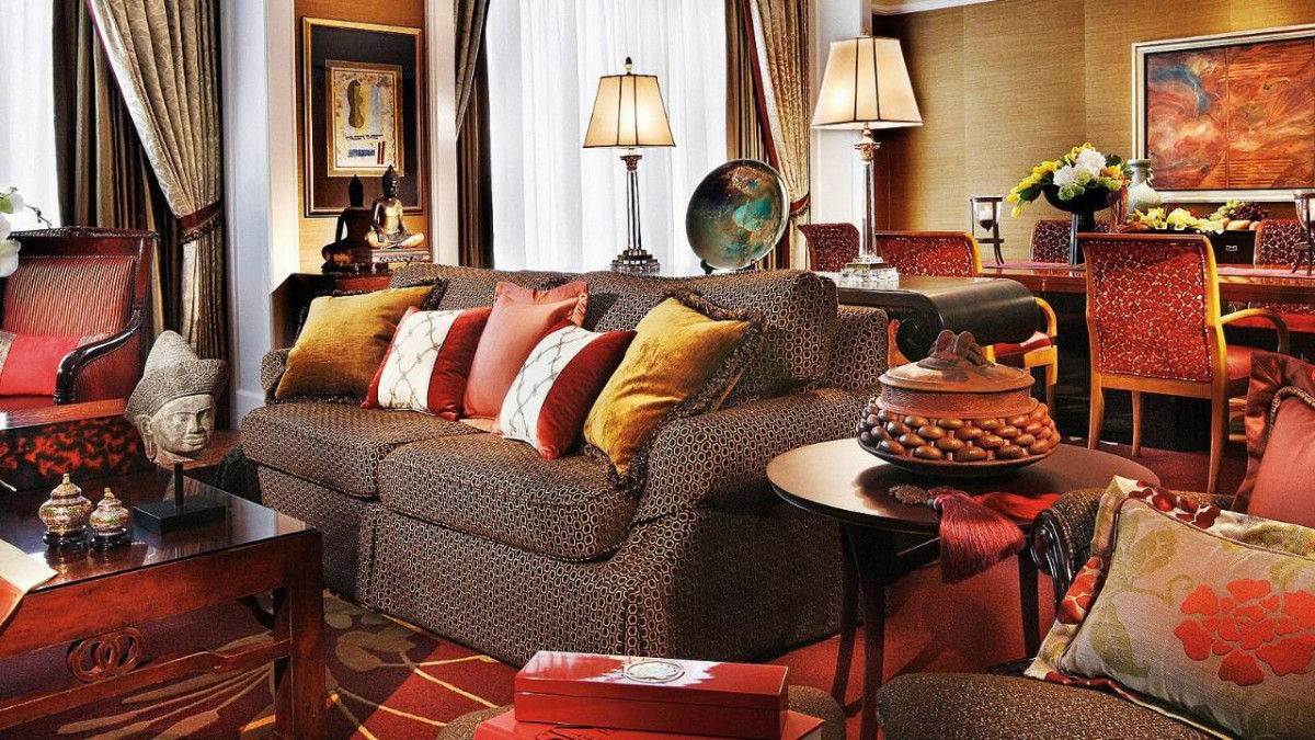 Площадь · 199 квадратных метров • Расположен на верхнем, 19-ом этаже отеля • Первая спальня с кроватью king-size • Вторая спальня – две кровати twin • Третья спальня – кровать king-size • В каждой спальне – телевизор с CD-плеером, сейф, вход в собственную ванную комнату • Большая гостиная, рассчитанная на 15 человек, с полом из черного мрамора • Столовая на 8 человек • Телефон (две линии) • Возможность подключения факса/компьютера • Высокоскоростной доступ в Интернет • Мини-бар • Сейф • Фен • Халаты • Ванная комната