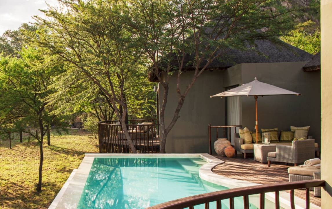Площадь · 88 квадратных метров • Терраса с небольшим открытым персональным бассейном и душем на открытом воздухе • Гостиная • Спальня с кроватью king-size • 2 ванные комнаты (одна – с ванной и душевой кабиной, другая – с душевой кабиной) • Номер имеет открытую планировку, спальная и ванная зоны не разделены • Расположены на первом этаже в угловой части здания • Вид на водопой и долину • Кондиционер • Вентилятор • Кабельное телевидение • WI-FI доступ в Интернет • Док-станция для iPod • Телефон • Голосовая почта • Сейф • Мини-бар • Оборудование для приготовления чая и кофе • Утюг и гладильная доска (по запросу) • Фен • Халаты • Тапочки