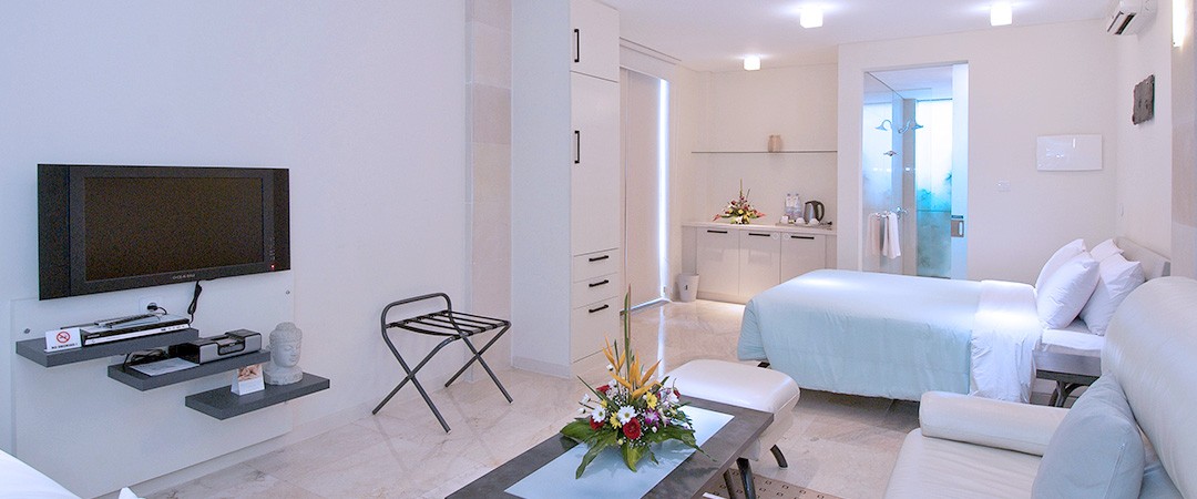 Во всех апартаментах, оформленных в белых тонах, установлены окна от пола до потолка, пропускающие большое количество естественного света. В числе современных удобств телевизор с плоским экраном, DVD-плеер и кондиционер.