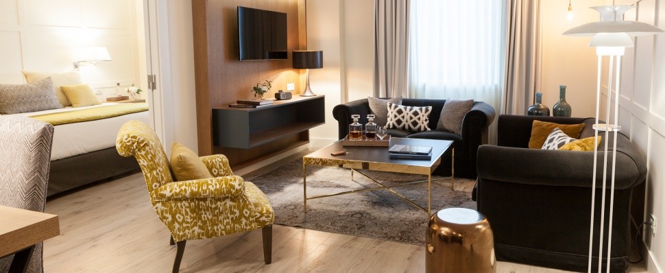 Площадь · 37 квадратных метров • Спальня с гостиной зоной (кровать king-size или две отдельные кровати) • Ванная комната • Кофемашина Nespresso • Телевизор • Wi-Fi доступ в Интернет • Док-станция для iPod/iPad • Игровая приставка Nintendo WII • Cейф • Мини-бар • Оборудование для приготовления чая и кофе • Фен • Халаты • Тапочки
