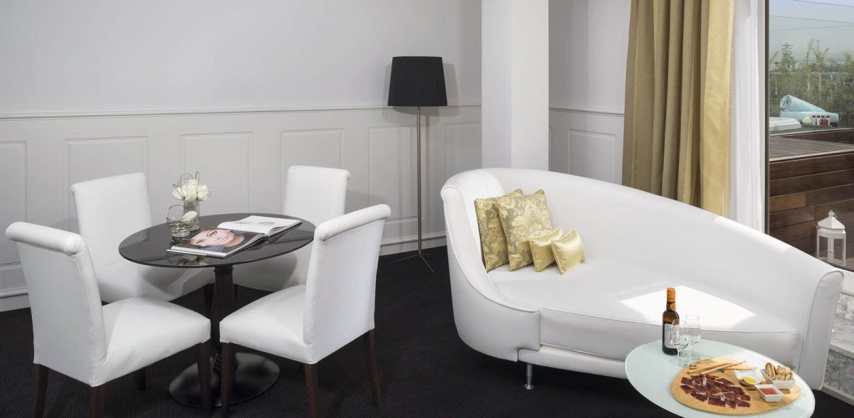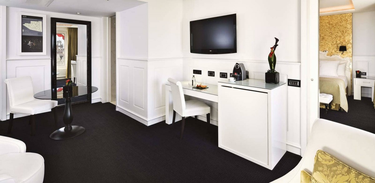 Площадь · 50 - 60 квадратных метров • Терраса с джакузи на открытом воздухе • Гостиная • Спальня с кроватью king-size или queen-size • Ванная комната с ванной и душевой кабиной с функцией «тропический дождь» • Кофемашина Nespresso • Игровая приставка Playstation и Wii • Расположены на 7 этаже • Панорамный вид на исторический центр города • Гости данных номеров имеют особые привилегии • Кондиционер/отопление • Спутниковое телевидение • Wi-Fi доступ в Интернет • Телефон • Голосовая почта • iPod • Сейф • Мини-бар • Чайник • Утюг и гладильная доска • Фен • Халаты • Тапочки