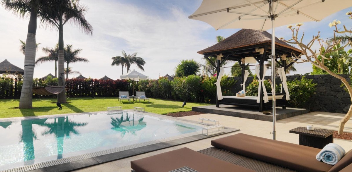 Площадь · 120 квадратных метров • Собственный сад с персональным подогреваемым бассейном • Обеденной зоной на открытом воздухе и павильоном для отдыха • Гостиная зона • Спальня с кроватью king-size • Гардеробная • Ванная комната с джакузи и душевой кабиной • Вид на океан • Кондиционер • Телевизор • WI-FI доступ в Интернет • Возможность подключения iPod и iPhone • Радио • Телефон • Голосовая почта • Сейф • Мини-бар • Утюг и гладильная доска • Чайник • Фен • Халаты • Тапочки