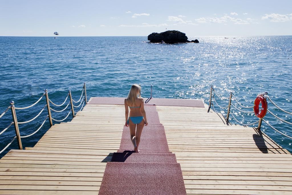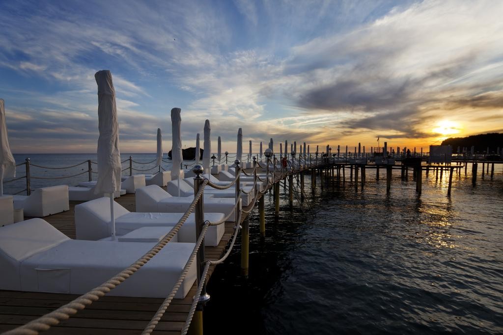 До собственного песчано-галечного пляжа рукой подать. Он оборудован добротным пирсом с удобными спусками в море. С мягкими кожаными шезлонгами соседствуют уютные плетеные кресла и кресла-мешки.