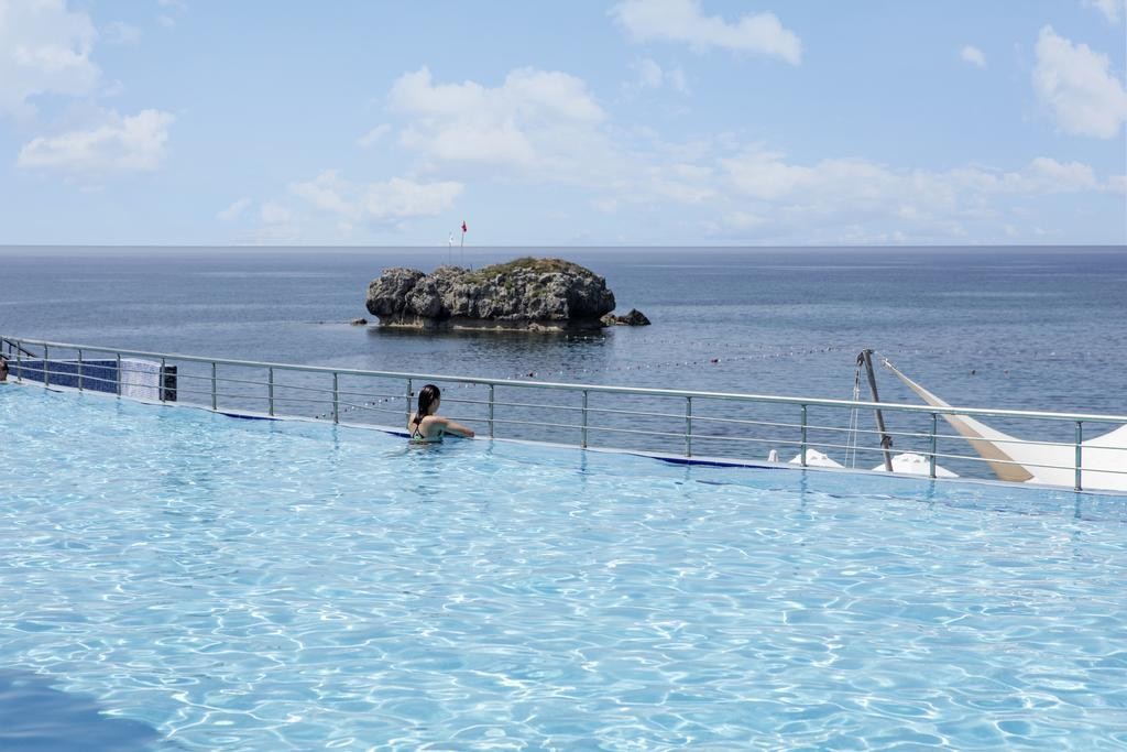 Территория оборудована кортами и столами для игры в теннис. А сколько эмоций дарит шикарный бассейн, выполненный по дизайнерскому проекту! Он имеет необычную замысловатую форму, украшен фонтанами и скульптурами — излюбленное место туристов для проведения фото сессий.