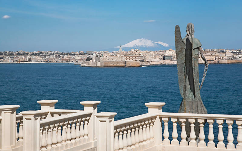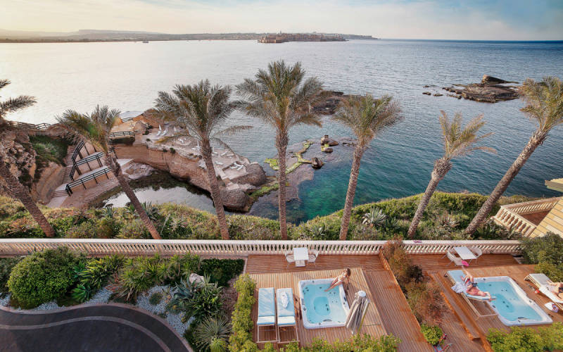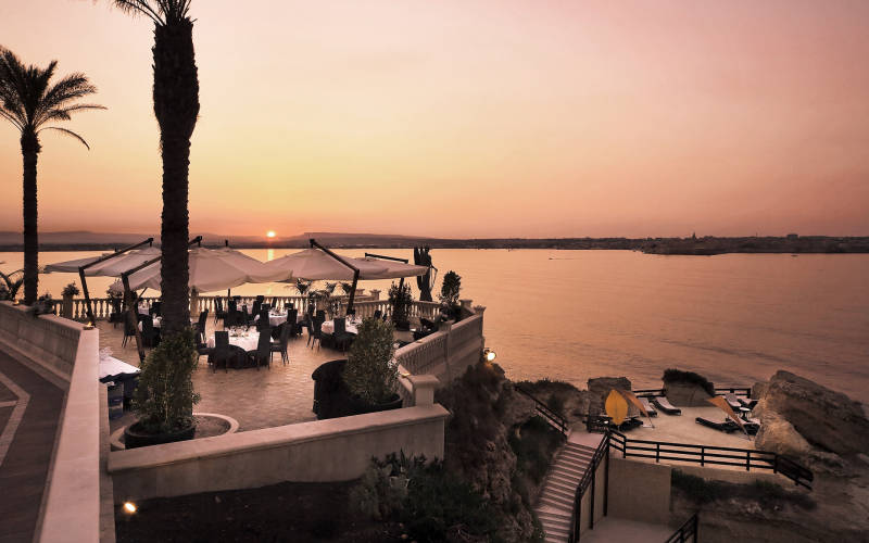Гранд-отель Minareto расположен на скалах с видом на Сиракузу и остров Ортигия.