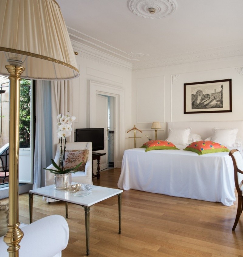 Площадь · 60 квадратных метров • Балкон • Гостиная • Спальня с кроватью king-size • Гардеробная зона • Ванная комната с ванной и душем • Расположены с первого по четвертый этаж • Вид на внутренний сад • Кондиционер • Спутниковое телевидение • Wi-Fi доступ в Интернет • Телефон • Сейф • Мини-бар • Фен • Халаты