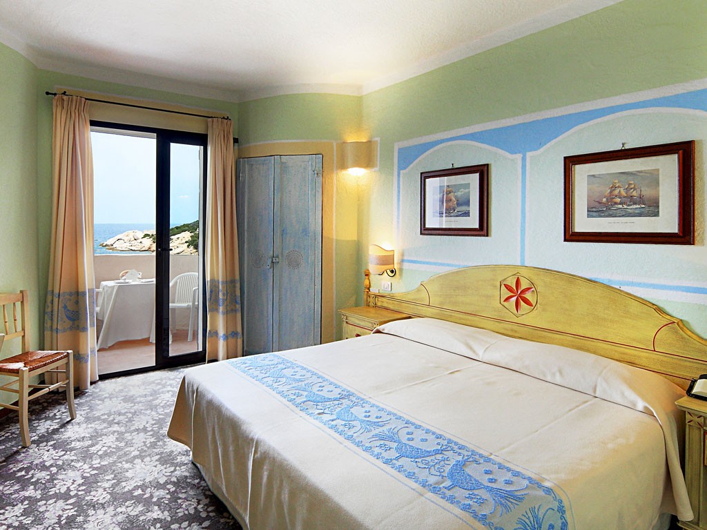 Из окон красиво оформленного гранд-отеля Smeraldo Beach открывается живописный вид на окрестности. В распоряжении гостей террасы с видом на Корсику и пляжи Таити и Капрера, а также патио и бары, где можно отдохнуть и заказать напитки.