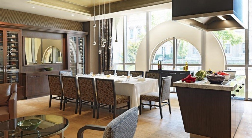 Из каждого номера площадью от 36 до 42 кв. м открываются виды на город, бассейн или сады. Удобства включают пуховые перины, отдельную зону отдыха, рабочее место с доступом к высокоскоростному беспроводному Интернету, док-станцию для звуковых систем iPod, а также ванную комнату, отделанную мрамором с отдельной ванной и дождевым душем со стеклянными стенками.
