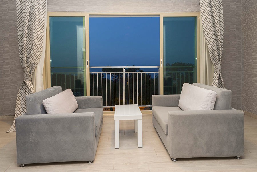 Площадь · 38м2 · индивидуальный кондиционер · мини-бар (в день заезда только вода) · спутниковое ТВ с российским каналом · интернет (платно) · прямой телефон · ванна · терраса · фен · тапочки · сейф (бесплатно) · балкон · софа · дополнительная раскладная кровать (по запросу).