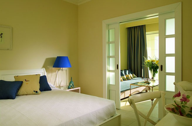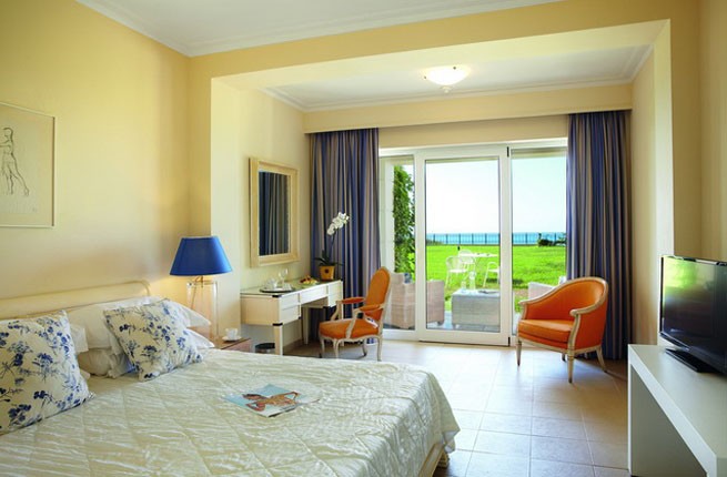 Элегантные номера, люксы и бунгало с окнами от пола до потолка в отеле Olympia Riviera Thalasso оформлены в бежевых тонах и располагают балконом или террасой с видом на Ионическое море. Каждый номер оснащен кондиционером, холодильником, сейфом и телевизором со спутниковым телевидением. В роскошной ванной комнате предлагаются халаты, тапочки и бесплатные туалетно-косметические принадлежности.