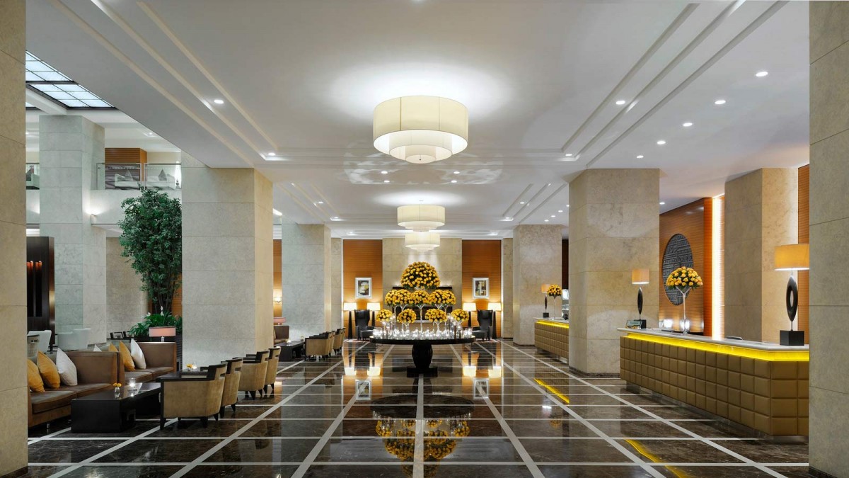 Пятизвездочный отель Grosvenor House с панорамным видом на пристань для яхт Дубая расположен на набережной Дубая.