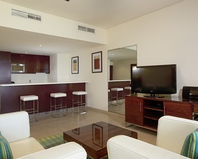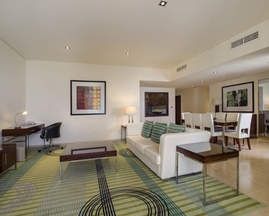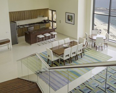Площадь · 108-155 квадратных метров • вид на Дубай Марина • расположение 2 взрослых и 2 детей • доступ в Executive Lounge • Рабочий стол • Wi-Fi • ЖК-телевизор с DVD-плеером • столовая • кухня • посудомоечная машина • холодильник • прачечная • есть смежные номера