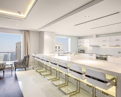 Площадь · 262 квадратных метров • Идеально для большой семьи, этот президентский пентхаус располагает 4 двухместных номера с ванной комнатой и гардеробной. Может похвастаться великолепным видом на Персидский залив и Дубай Марина. • Размещение 8 взрослых и 4 детей • большая терраса • кухня • холодильник • Wi-Fi