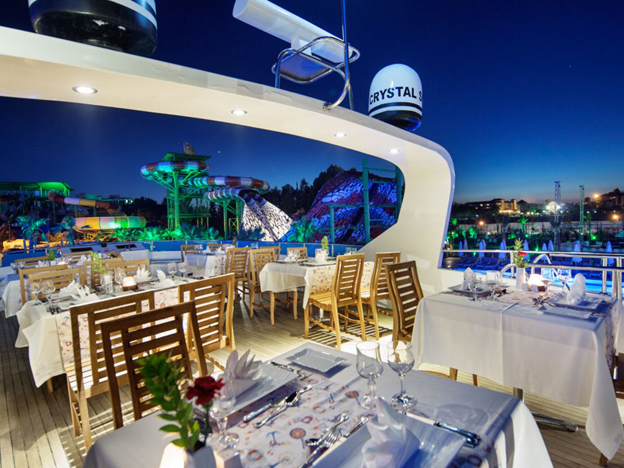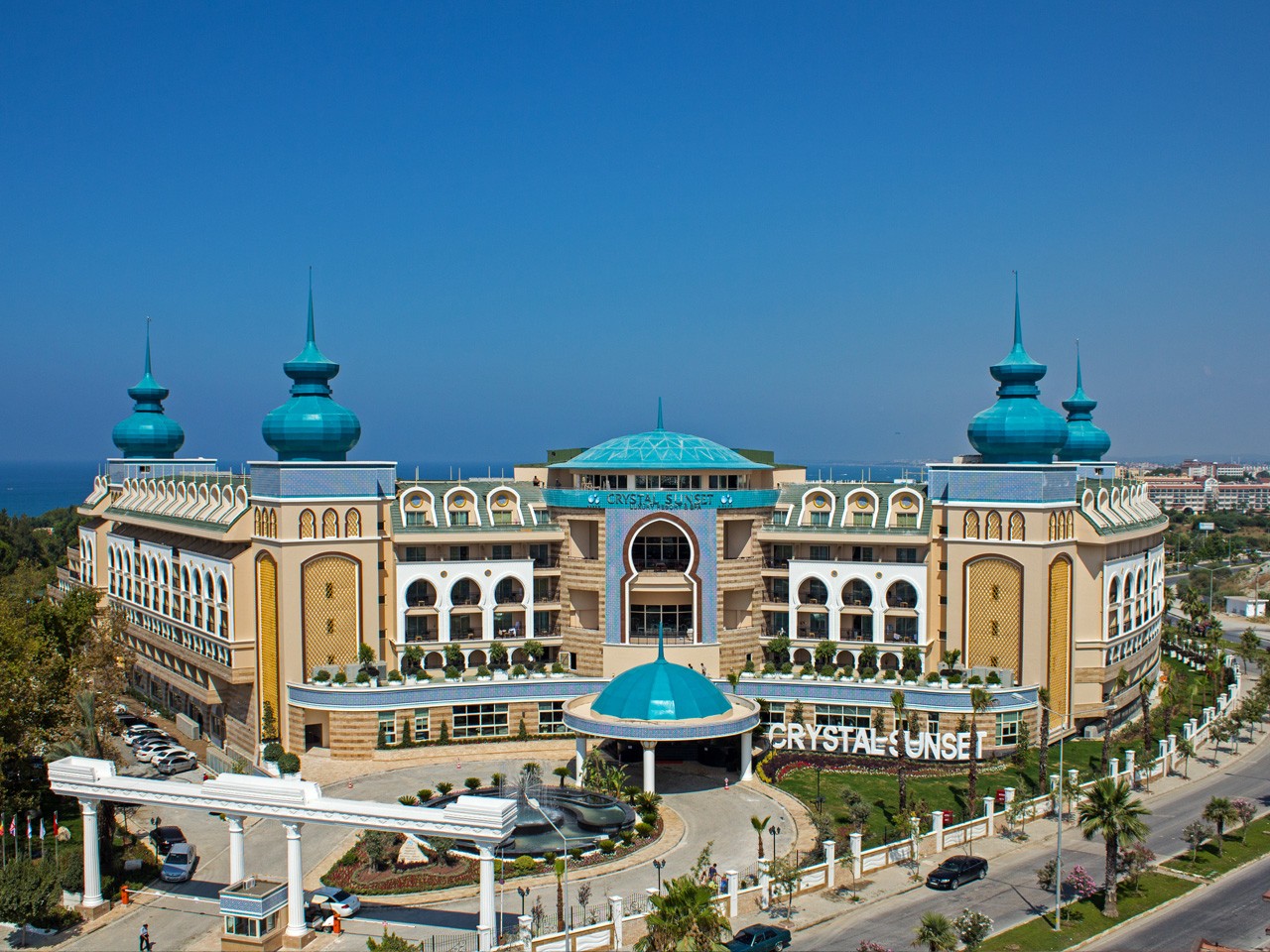 Комплекс Crystal Sunset Luxury Resort & Spa 5* расположен у берегов Сиде в Турции. Обширная территория включает здания для проживания, бассейны, аквапарк, амфитеатр, а также прочие развлекательные объекты. Питание представляет собой шведский стол в главном ресторане и четыре аля-карт ресторана на выбор. Номера просторные и светлые с большими балконами, откуда открывается вид на окружающие красоты.