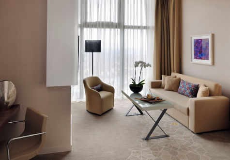 Площадь · 72 квадратных метров • Вид на море • Кондиционер • Панорамные окна • Кровати 1 King и 1 Twin, софа • Биде • Фен • Тапочки • Сейф • Рабочий стол • Утюг и гладильная доска • Чай и кофе • Мини бар • Телефон • Интернет • Телевизор 42» • Радио • Привилегии Executive lounge