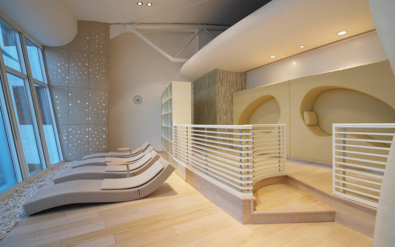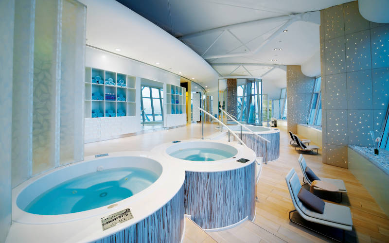 В красиво декорированном спа-центре в отеле Jumeirah Beach Hotel есть все, чтобы отдохнуть и восстановить силы, в том числе 2 сауны, 2 массажных кабинета, 3 горячие спа-ванны, джакузи и небольшой глубокий бассейн.