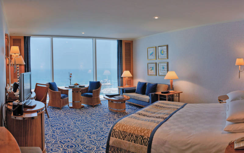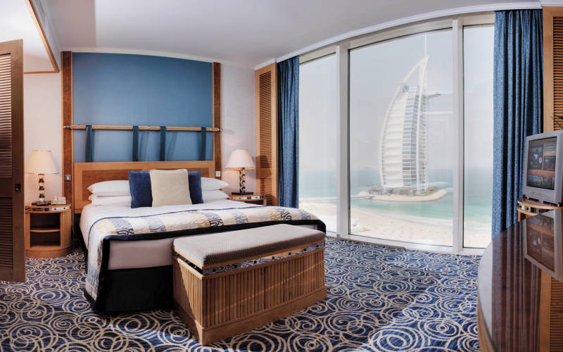 Из всех роскошно обставленных 617 номеров, в том числе номеров категории люкс и пляжных вилл, открываются восхитительные виды на Персидский залив. Кроме того, к услугам гостей дайвинг-центр, 5 бассейнов, детский клуб Sinbad's Kids Club, клуб для подростков The Hub, а также бесплатный неограниченный доступ в аквапарк Wild Wadi.