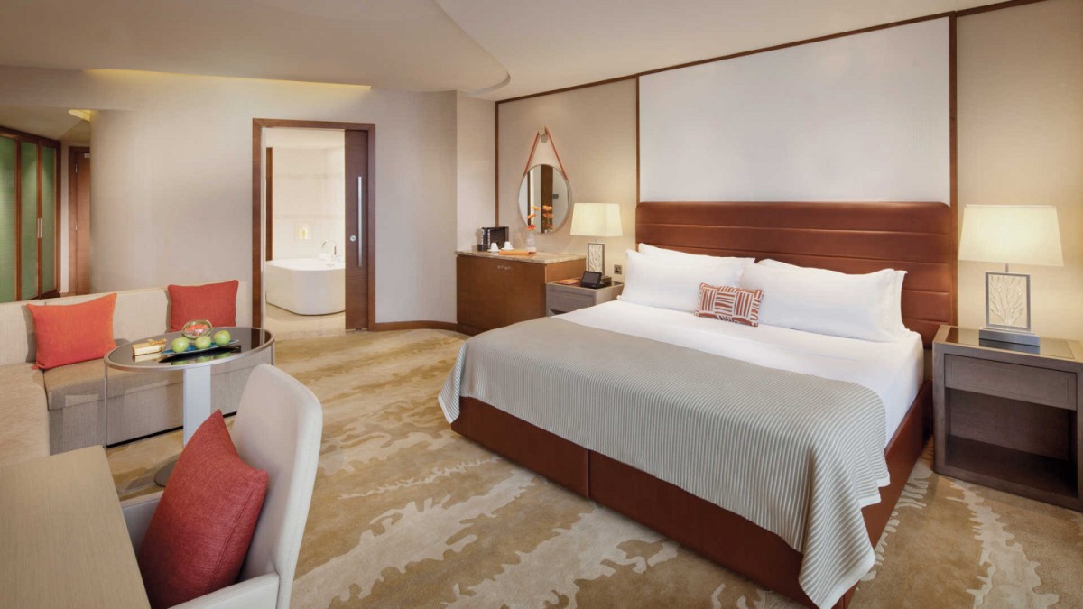 Площадь · 162 квадратных метров •Идеально подходит для семей. Номер с просторными балконами и выделенным доступом в лаундж. • кондиционер • отдельная гостиная • две спальни с Kingsize кроватью и двумя односпальными кроватями • HD ЖК-телевизор • отдельный душ и ванна • гардероб • чай и кофе • ежедневная газета • сейф • мини-бар •есть смежные номера • IPod / iPhone док станция • Wi-Fi • бесплатный доступ в Club Executive Lounge и Premium Lounge