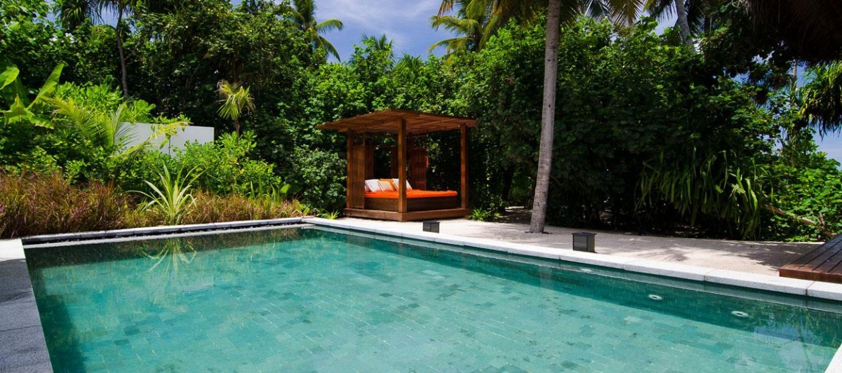 В курортном отеле Jumeirah Dhevanafushi гостям предлагают размещение в роскошных виллах с собственным бассейном, расположенных в нескольких шагах от лагуны с прозрачной водой и песчаных пляжей.